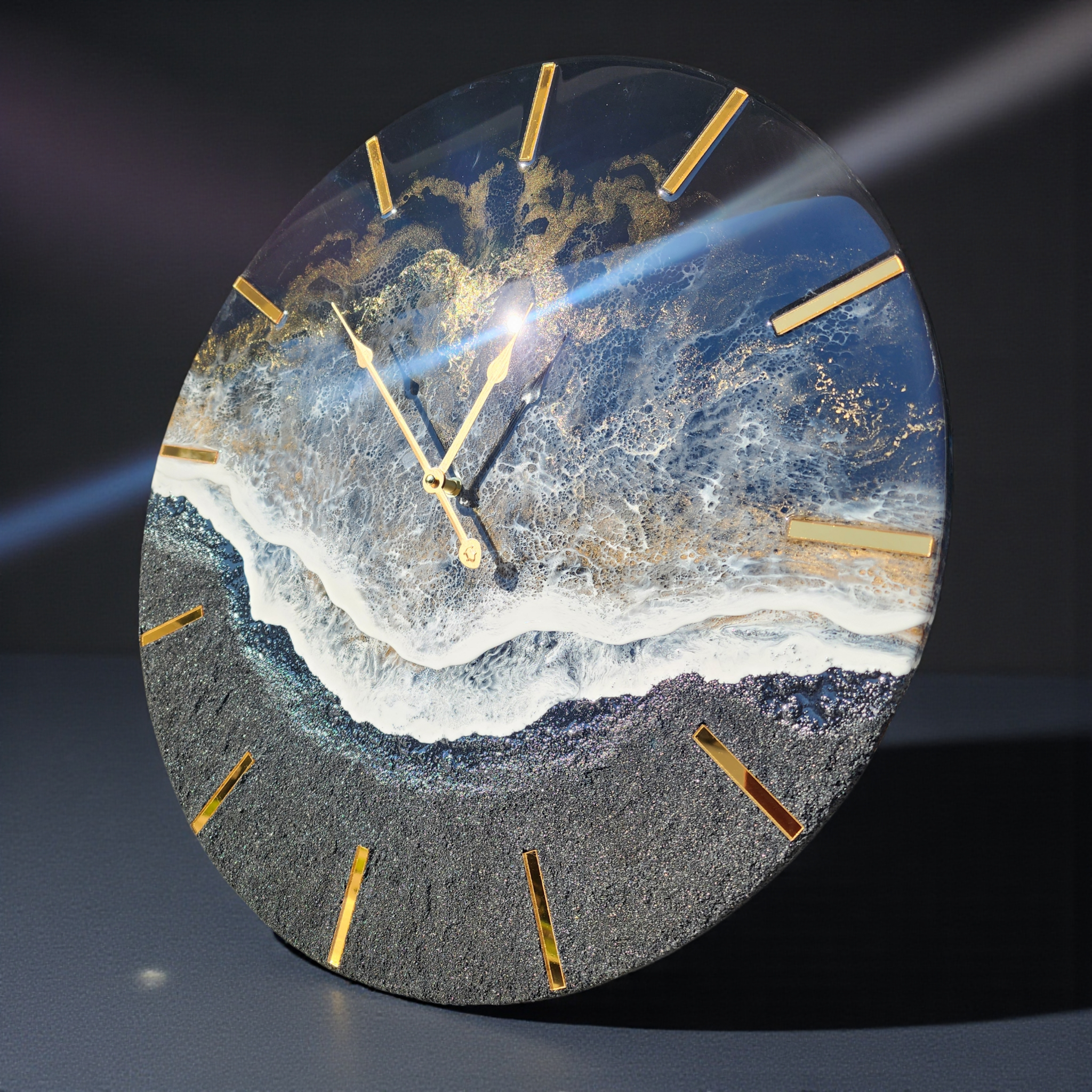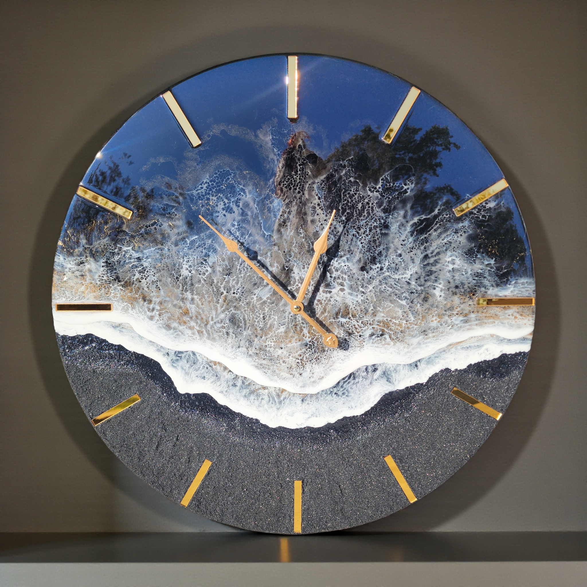 Black and Gold Wave Clock with mirrored gold acrylic clock ticks.