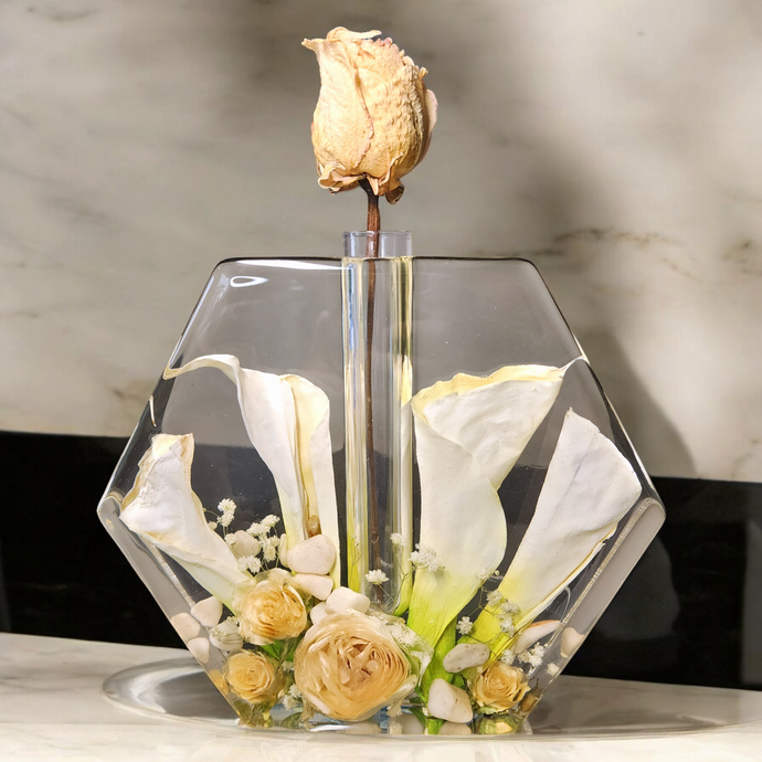 Reserved for Sydney - Hexagon Vase Custom Floral Preservation