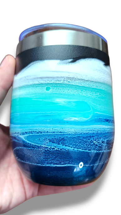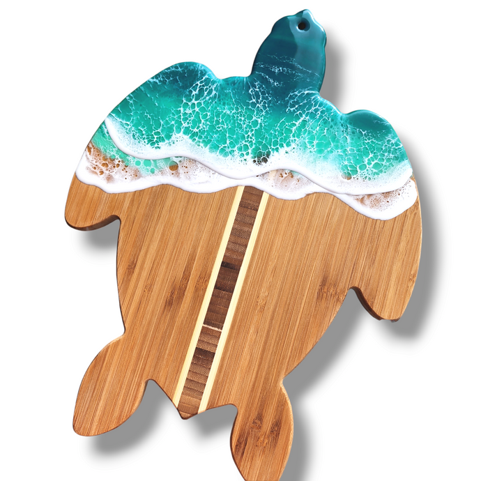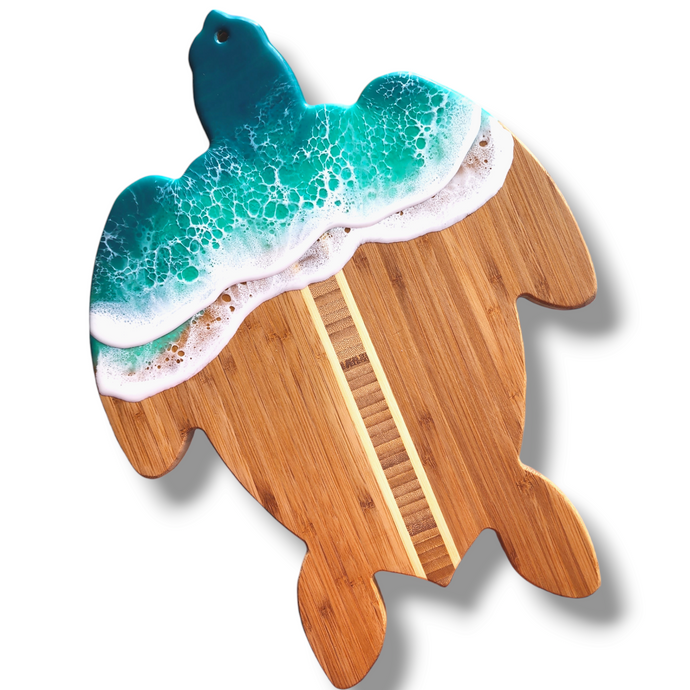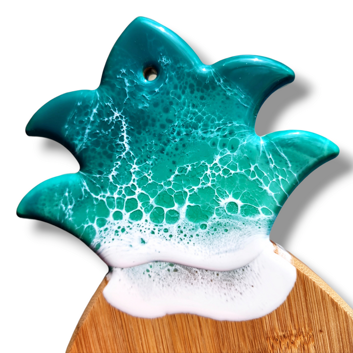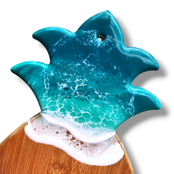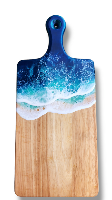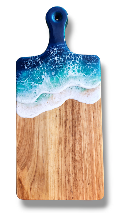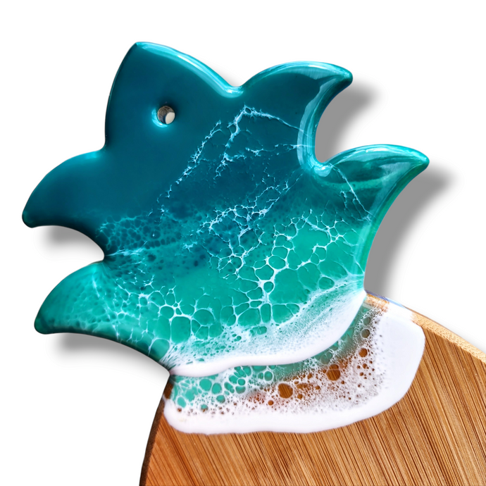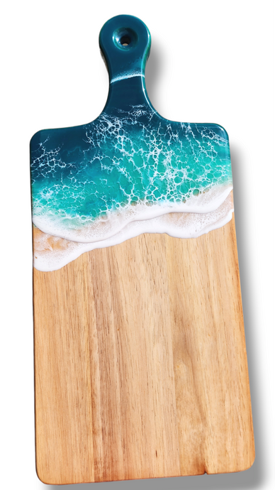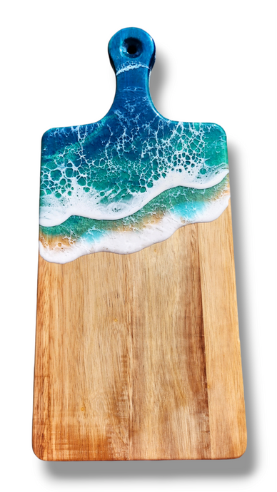 Metallic Turquoise Ocean Wave Serving Board with Handle