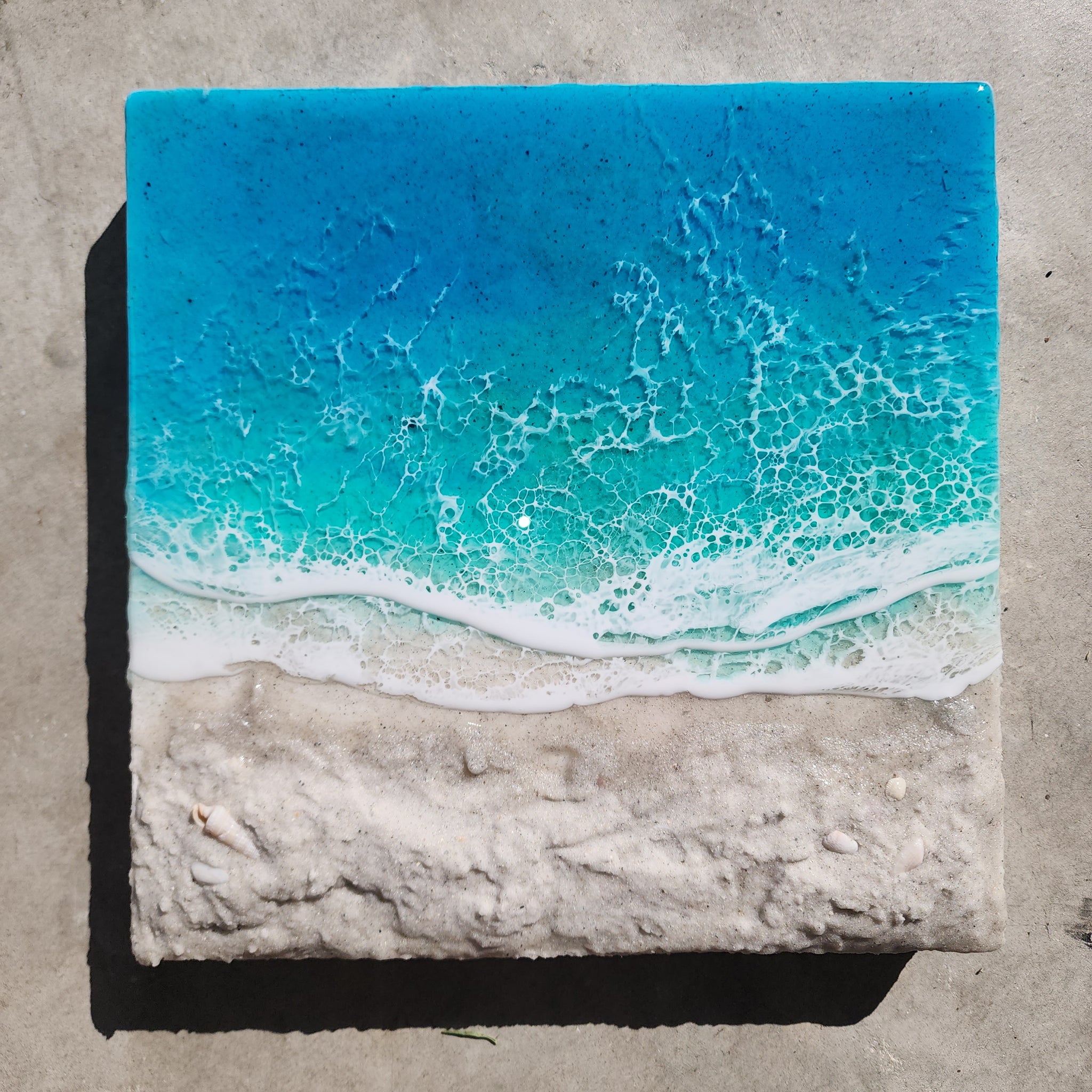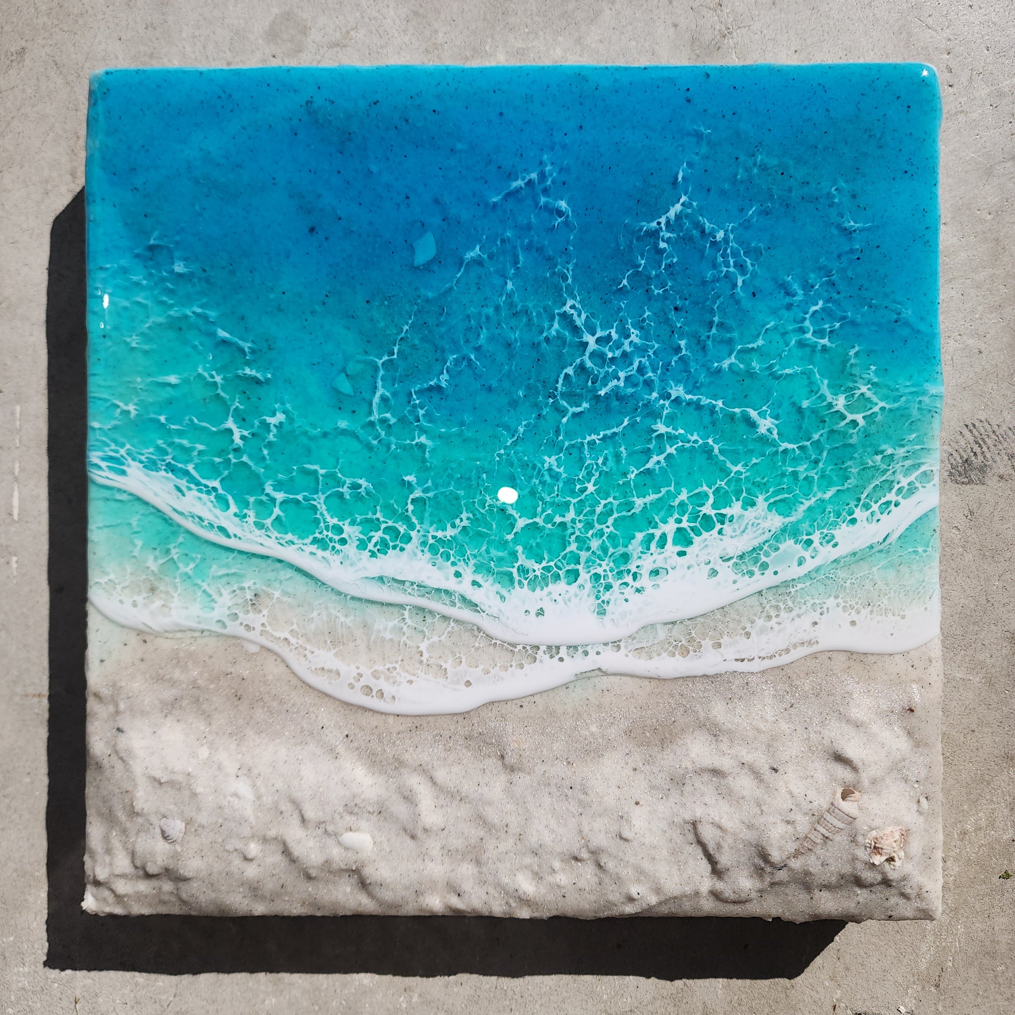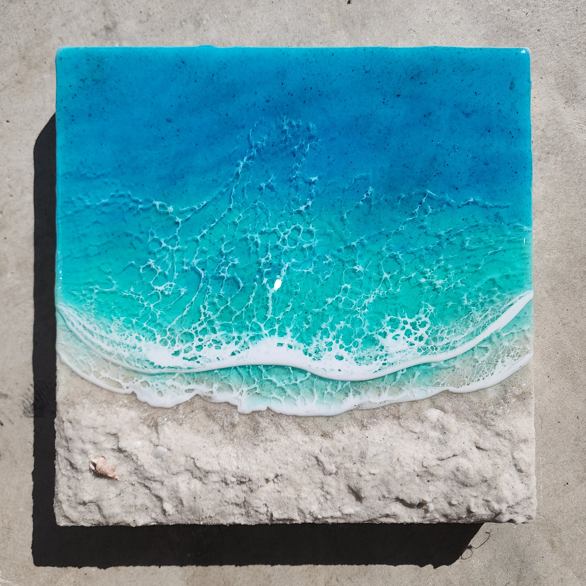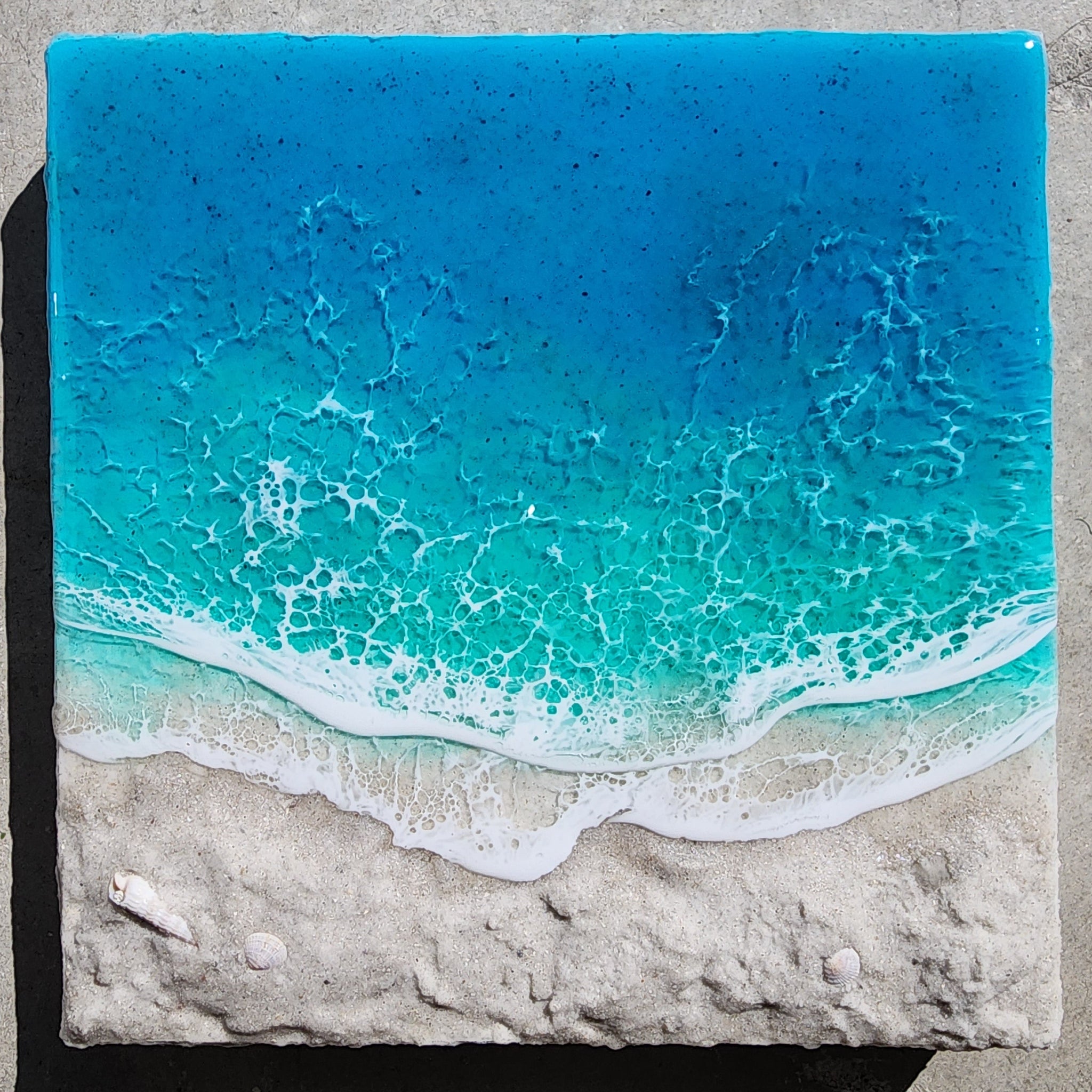 Mini Beach Wall Art: made with local Lido Key sand, real shells and layers of translucent epoxy waves.