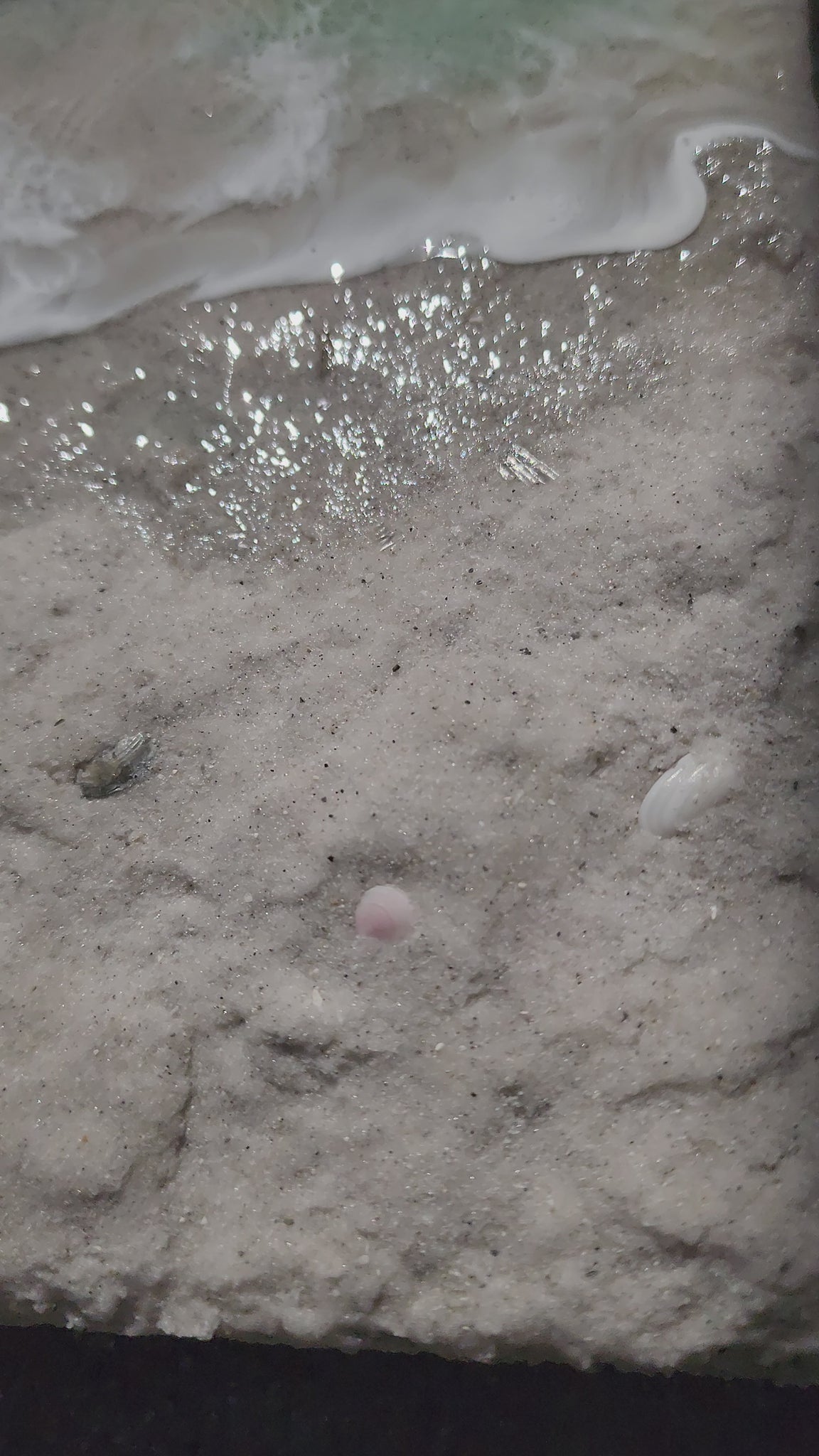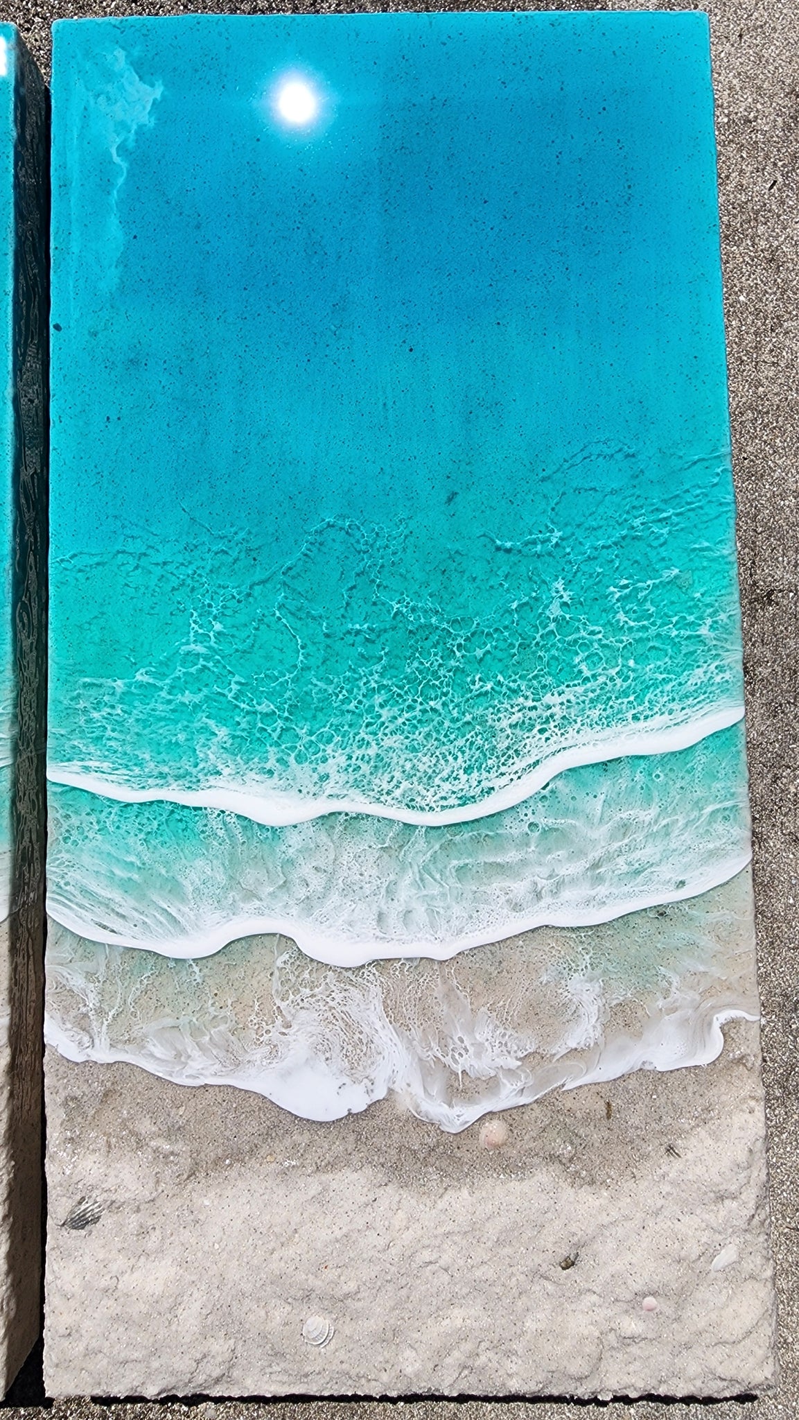 Mixed media double panel wall art. Made with real Siesta Key sand and shells with 5 layers of transparent epoxy waves.
