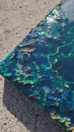 Only the highest quality resin & pigments have been used. Artwork is intended for indoor use. Although resistant to yellowing, this product is not recommended for continuous outdoor exposure to UV light. Avoid extreme hot or cold temperatures and high humidity. Avoid abrasive and sharp objects on the epoxy surface.